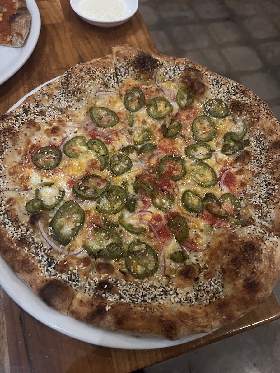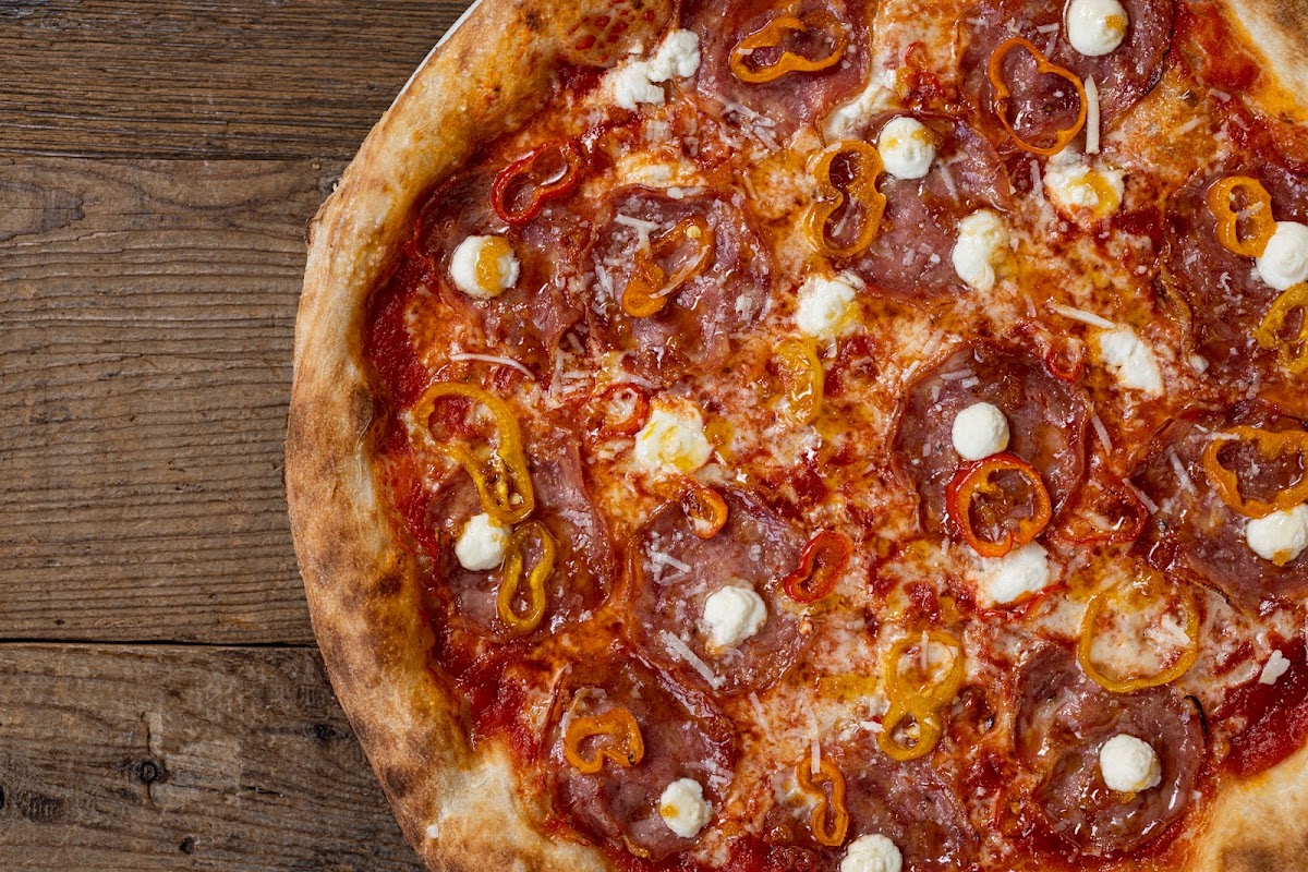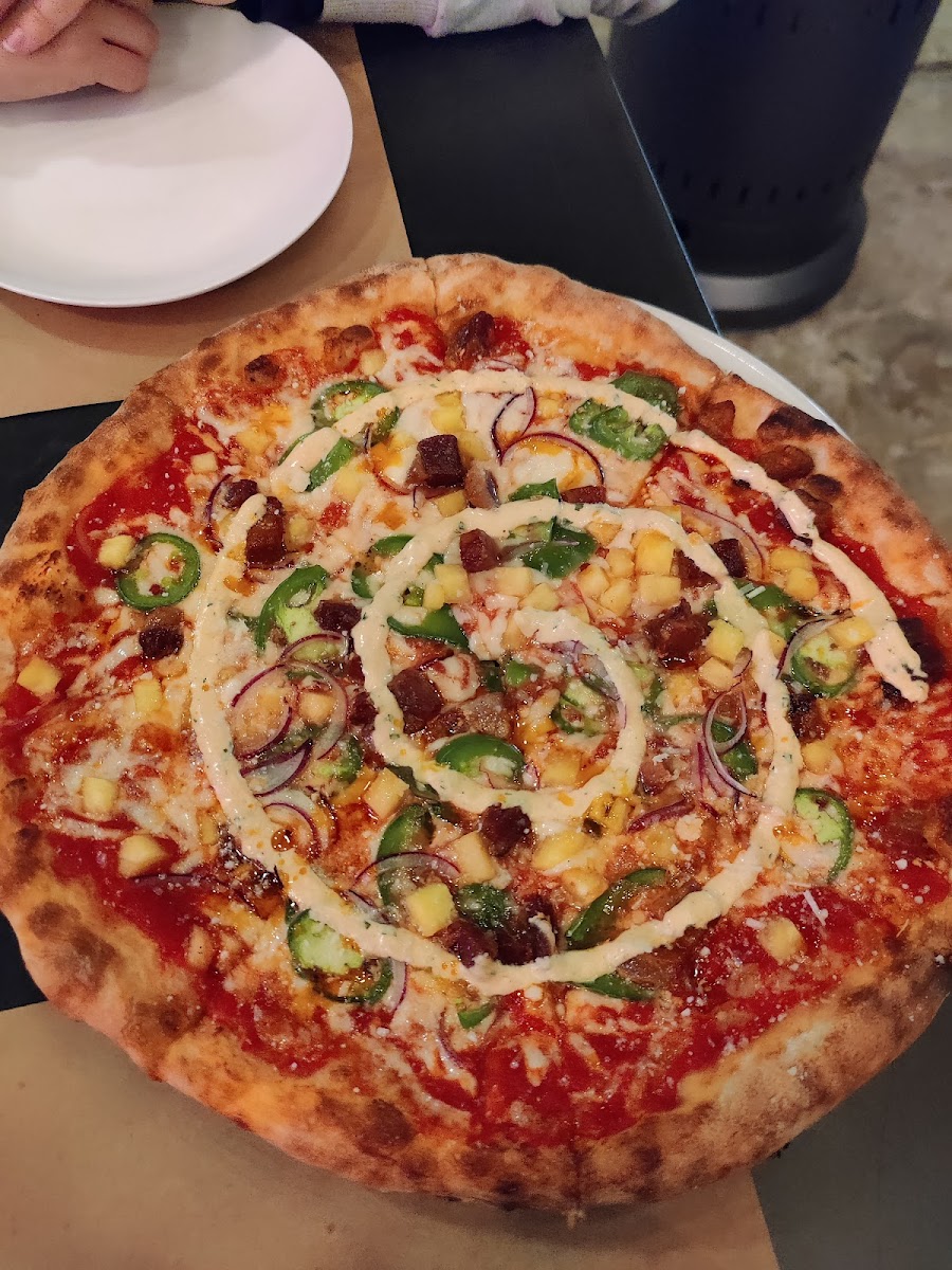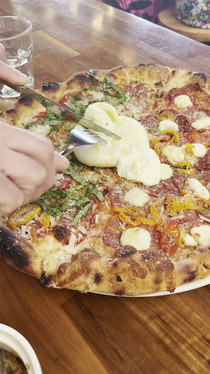 The moment you step inside, you’re enveloped in a warm, inviting atmosphere that pays homage to the beloved pizzerias of old with its charming decor and friendly staff. The wood-fired oven takes center stage, a massive structure that imbues each pizza with deep, smoky flavors—an allure you can almost taste even before you place your order.